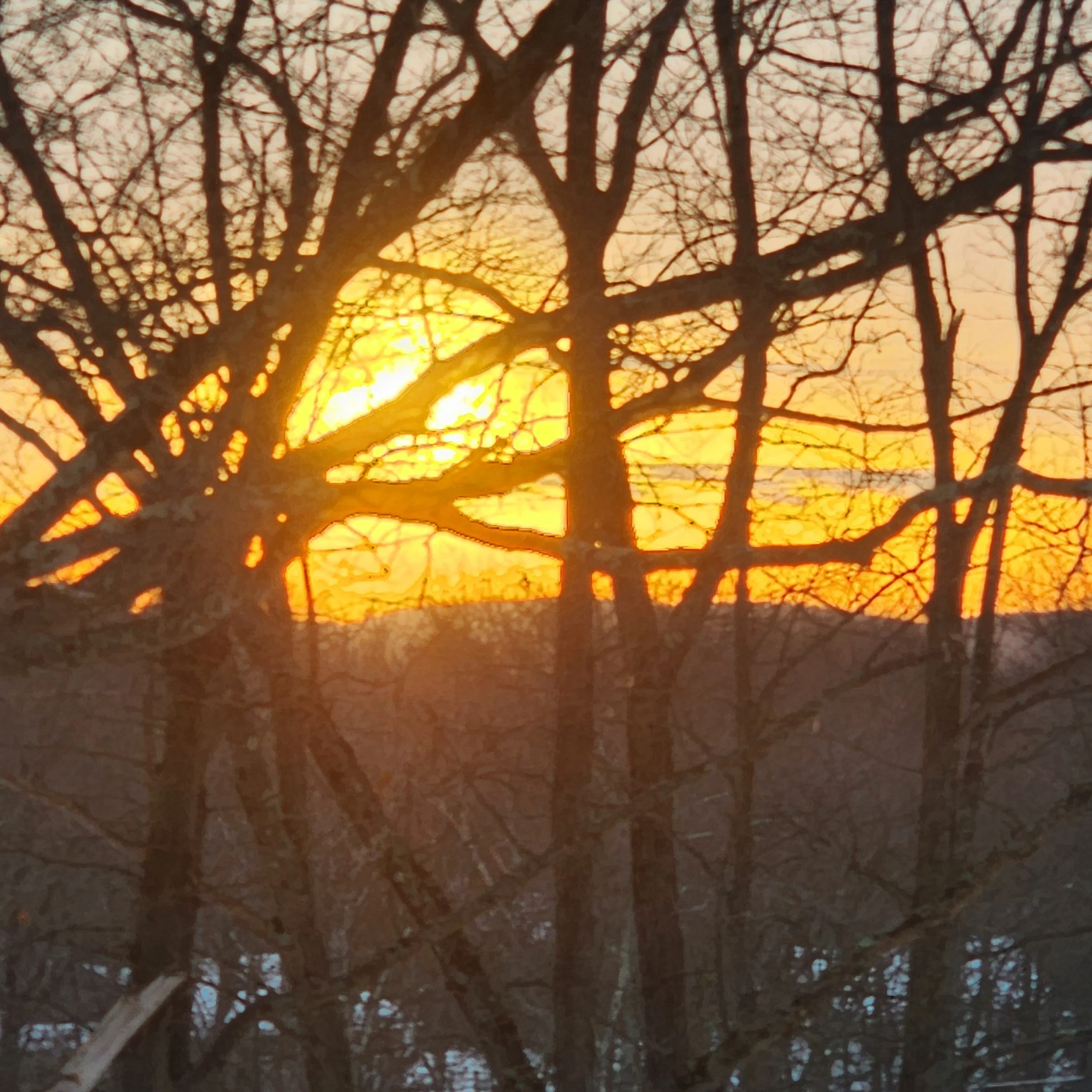 Early morning sun in the trees.