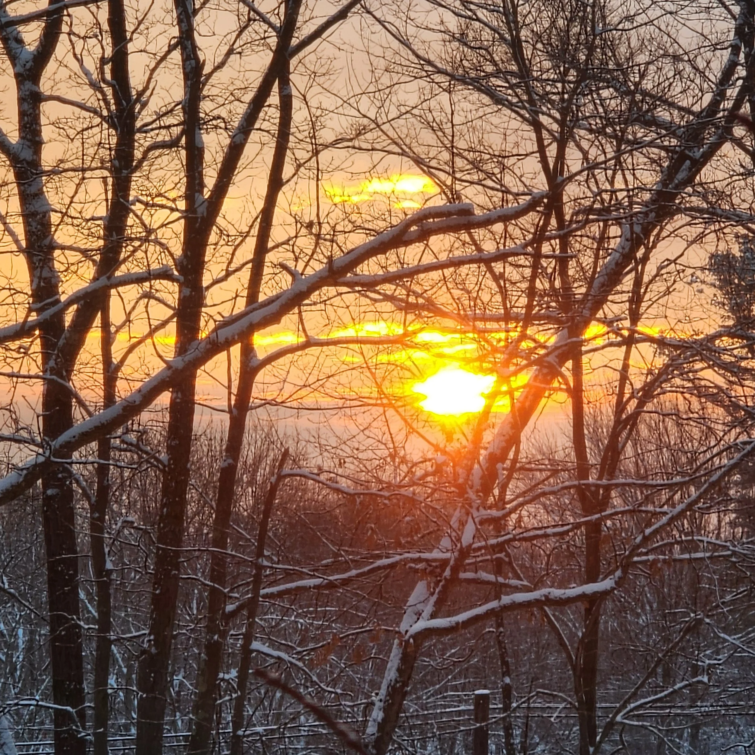 The bright dawn shines through.